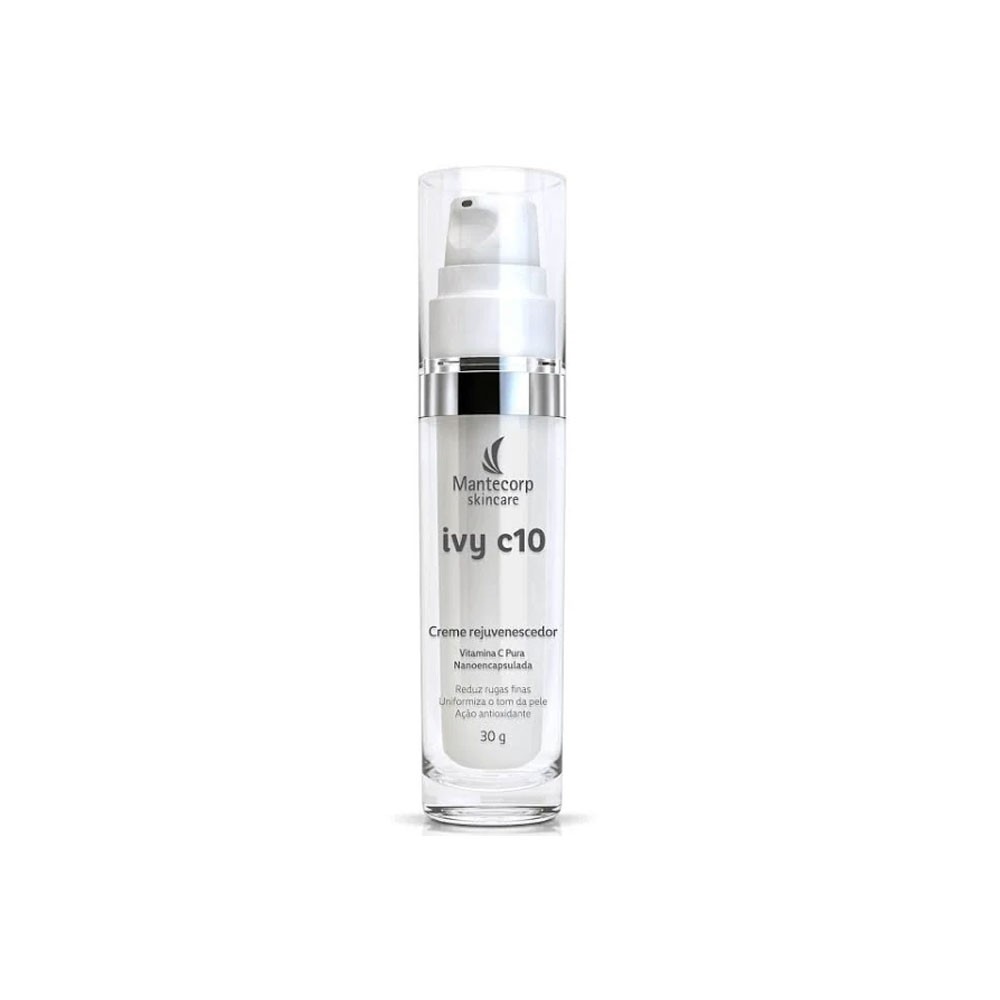 O Mantecorp Ivy C10 é um creme facial anti-idade indicado para todos os tipos de pele. Sua fórmula contém Vitamina C pura nanoencapsulada com alto poder antioxidante, que reduz rugas e linhas finas de expressão, além de estimular a produção de colágeno e uniformizar o tom da pele.